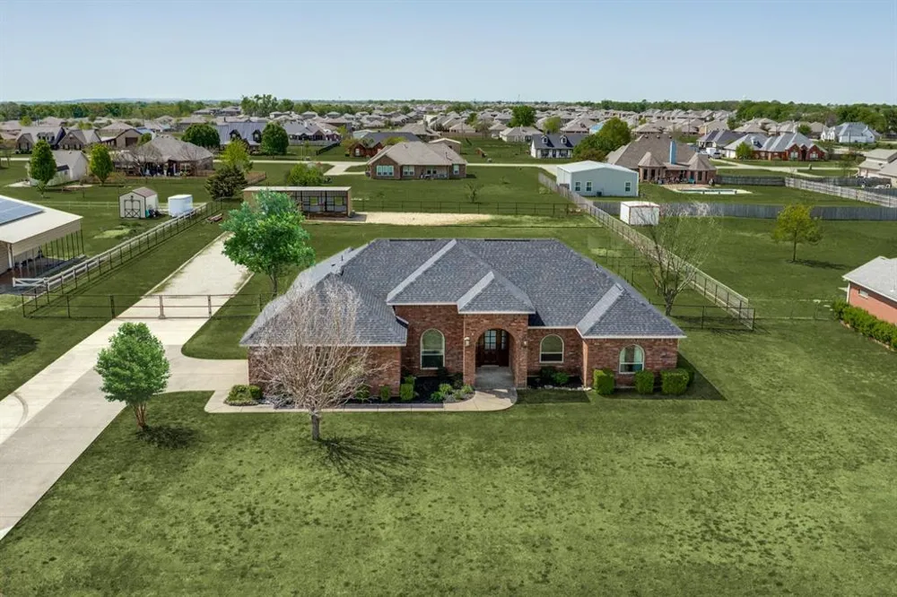 Price Reduced!!! **Low 1.45% Tax Rate! Outside city limits** Charming Acreage Living in Van Alstyne! Discover a beautiful brick home nestled on a sprawling 1-acre lot with the added benefit of no HOA restrictions. This property features 4 bedrooms, 2 tastefully renovated bathrooms, and a convenient 2-car garage plus extra parking space. Inside, enjoy an attractive kitchen with granite countertops, an updated backsplash, a cozy breakfast nook, and a dining room with updated light fixtures. The living room boasts a tray ceiling, wood-look flooring, and an updated sliding glass door that opens to a large covered patio. The spacious primary suite offers an updated bathroom with a renovated shower, granite countertops, new fixtures, dual walk-in closets, and fresh paint. Secondary bedrooms with 2025 carpeting are thoughtfully separated from the primary bedroom. Outdoor enthusiasts will love the wide-open space for parking an RV, boat, or trailer, as well as a versatile storage building with car-port and stable area—perfect for chickens or a horse. Full pipe fencing and water hydrants in the backyard for your animals and projects plus a productive native pecan tree. With new windows in 2023, HVAC and water heater in 2024, this home is ready for you. Over $175k invested in recent home and property enhancements!